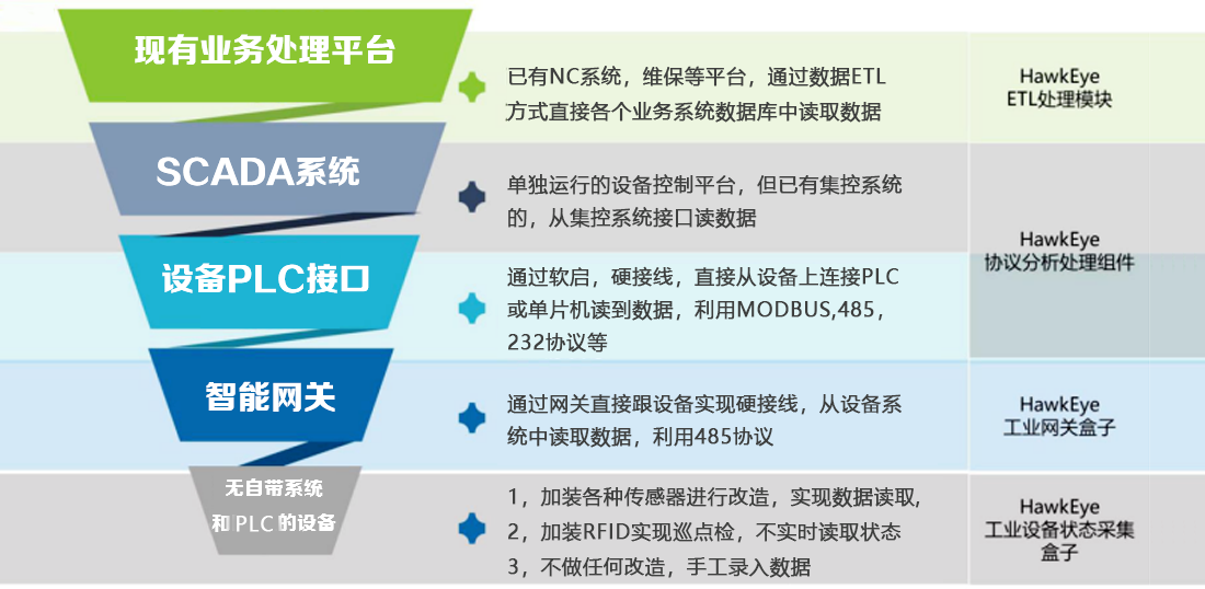 IOT平台HawkEye 设备管理平台结合,通过APP随时随地掌握工业企业关键机组、设备的状态信息和报警数据,更加客观的、精准的、可预知的,完善与优化企业设备综合管理水平。 与AI平台无缝对接,可以方便快捷的实现海量设备数据的存储、分析、计算及智能处理。