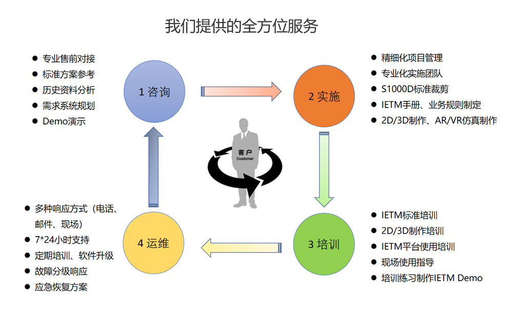行业内优秀的 IETM 解决方案 ,轻松快捷地创建多格式、高质量的交付内容。 对原始稿件规范化处理,数字格式采用最新的国际通用标准,保证内容的通用性,规范性和系统兼容性。
